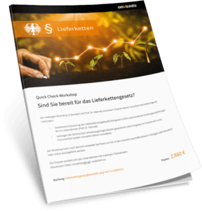 Eines ist sicher: Wer sich nicht frühzeitig mit den Sorgfaltspflichten auseinandersetzt, der wird mit gravierenden Aufwänden bei der späteren Umsetzung der Sorgfaltspflichten rechnen müssen. Erfahrungsgemäß betrifft die Implementierung neuer Gesetze alle Unternehmensbereiche mit verbundener administrativer Zusatzarbeit und -kosten. Aber da hier insbesondere die Zusammenarbeit mit Lieferanten betroffen ist, wird der Einkauf im Mittelstand mehrheitlich die Sorgfaltspflichten im Rahmen des Lieferkettengesetzes umsetzen. Warum also nicht mit der Umsetzung des Lieferkettengesetzes im Einkaufsbereich starten? Wir zeigen Ihnen in unserem Quick Check Workshop, wie Sie ein adäquates Risikomanagement aufsetzen und Ihre Dokumentations- und Berichtspflicht digitalisieren und automatisieren.