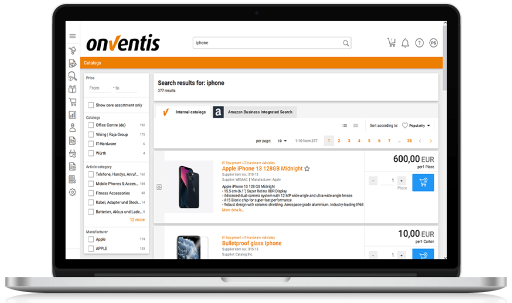 Die Onventis Plattform ist sehr intuitiv und nutzerfreundlich – sie ähnelt Onlineshops wie eBay oder Amazon. Nutzer können somit schnell geschult und eingearbeitet werden